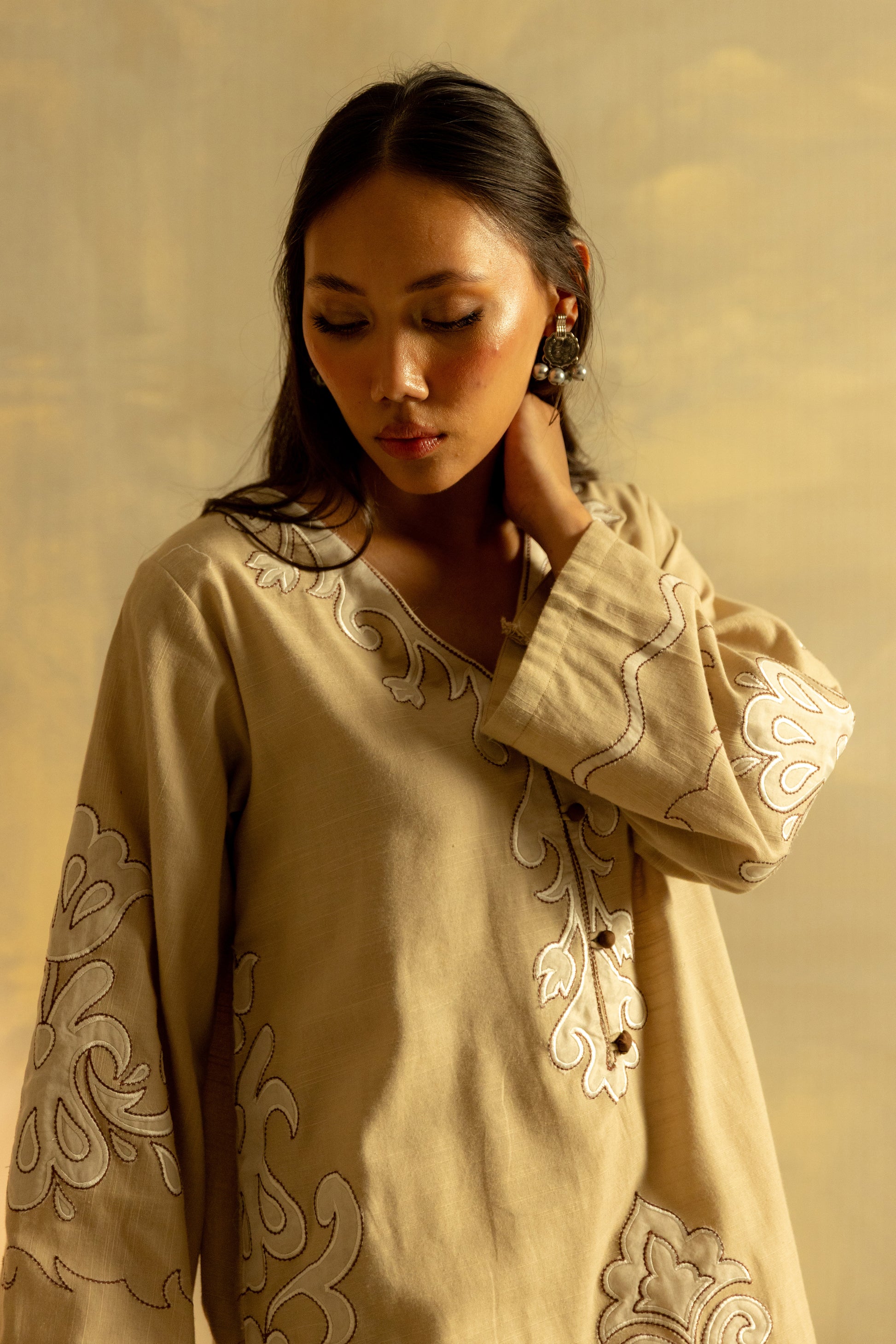 Our beige matching set in textured cotton is made for every moment. Soft, yet structured, it is perfect for workdays, evening dinners, and everything in between. Designed to be worn all year round, this style is your perfect pick-me-up for days you want to slip into something easy and discerning.